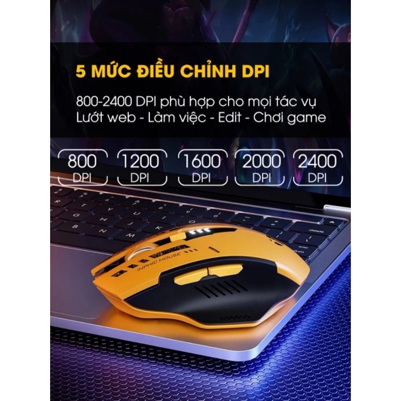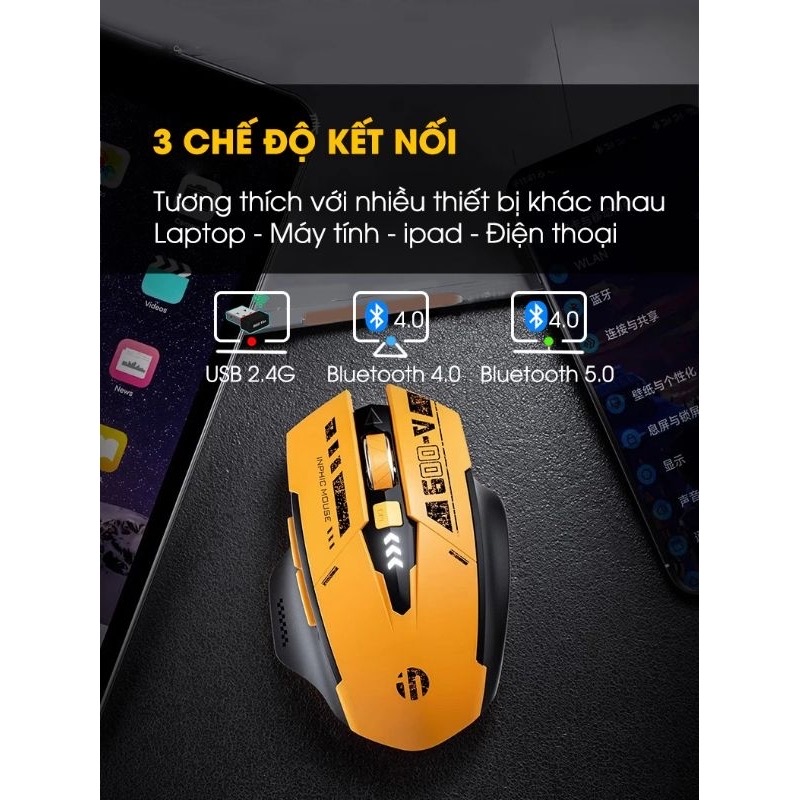 Chuột bluetooth 5.0 không dây TEKKIN INPHIC A9 gaming máy tính 6 nút silent tắt âm led hiển thị pin gundam công thái học