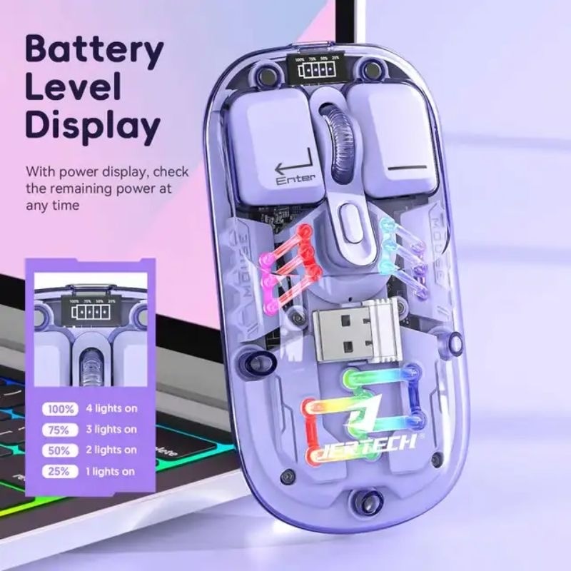 Chuột bluetooth không dây cao cấp TEKKIN JERTECH WB112 thiết kế trong suốt không tháo rời