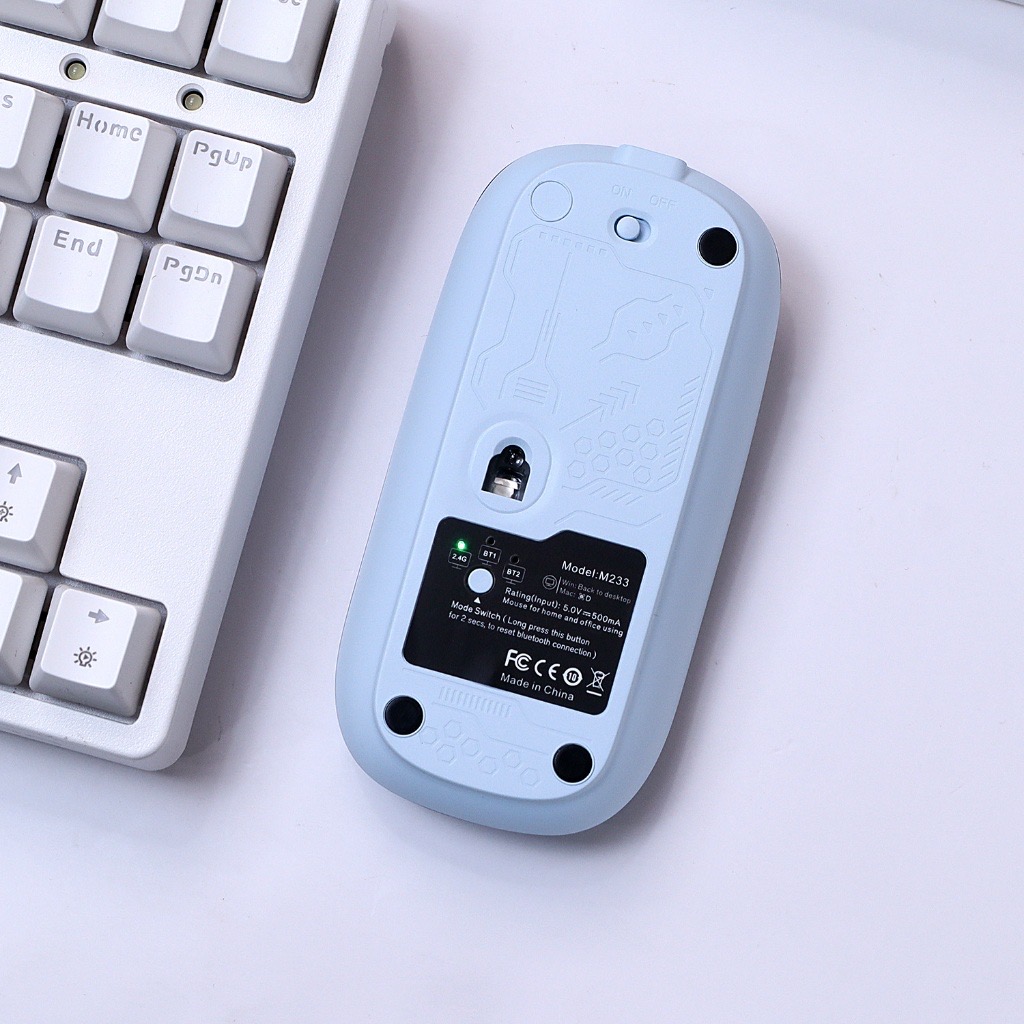 👉 Chuột không dây trong suốt M233 2.4Ghz+BT1+BT2, M233 2.4Ghz với thiết kế độc đáo, chất liệu nhựa abs trong suốt cứng cáp giúp người dùng thấy thiết kế, cấu tạo bên trong.