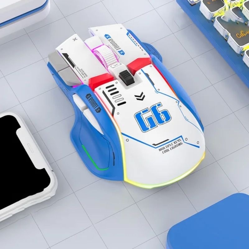 Chuột gaming máy tính có dây TEKKIN G6 GUNDAM 12800 DPI có 6 nút hỗ trợ app led RGB 16 triệu màu macro