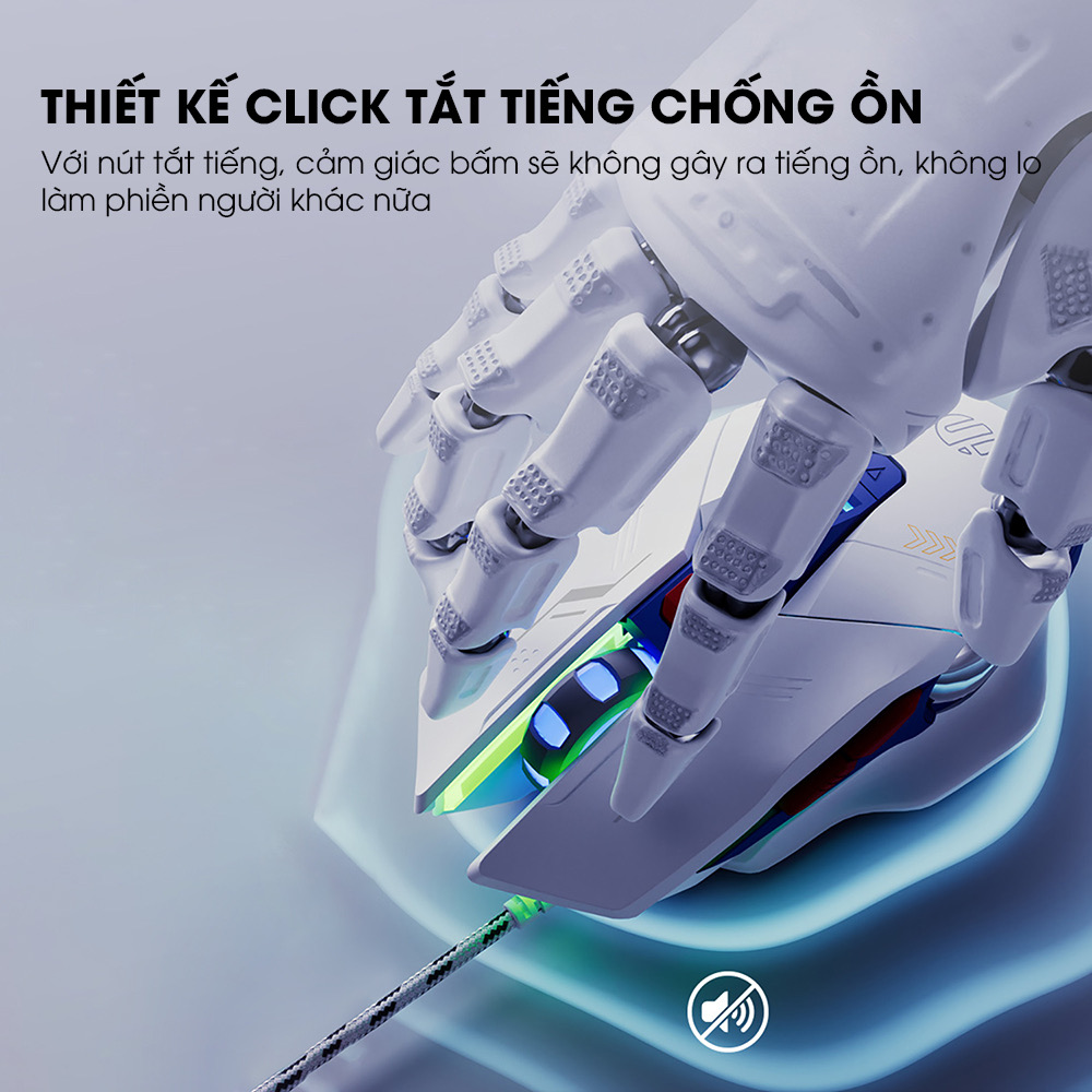 Chuột gaming máy tính có dây TEKKIN INPHIC W9 GUNDAM click silent chống ồn DPI 4000 cho gamer và dân văn phòng