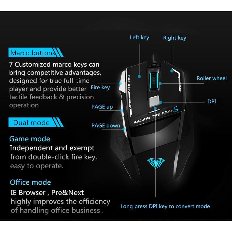 Chuột gaming TEKKIN AULA S12 4800 DPI có 7 nút bấm chuyên dụng cực nhạy chuyên chơi game