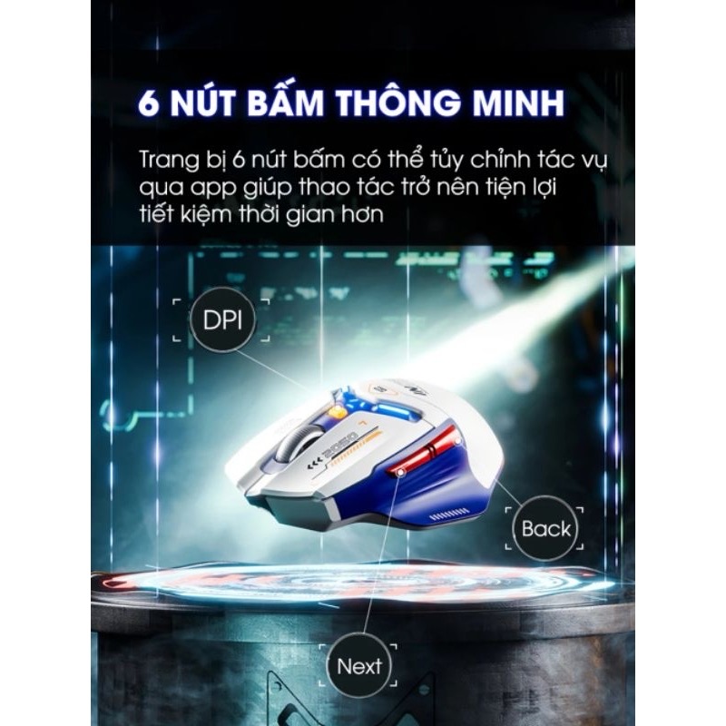 Chuột không dây gaming bluetooth TEKKIN INPHIC IN9 pin sạc led rgb 6 nút bấm 3 mode có app chơi game macro gundam