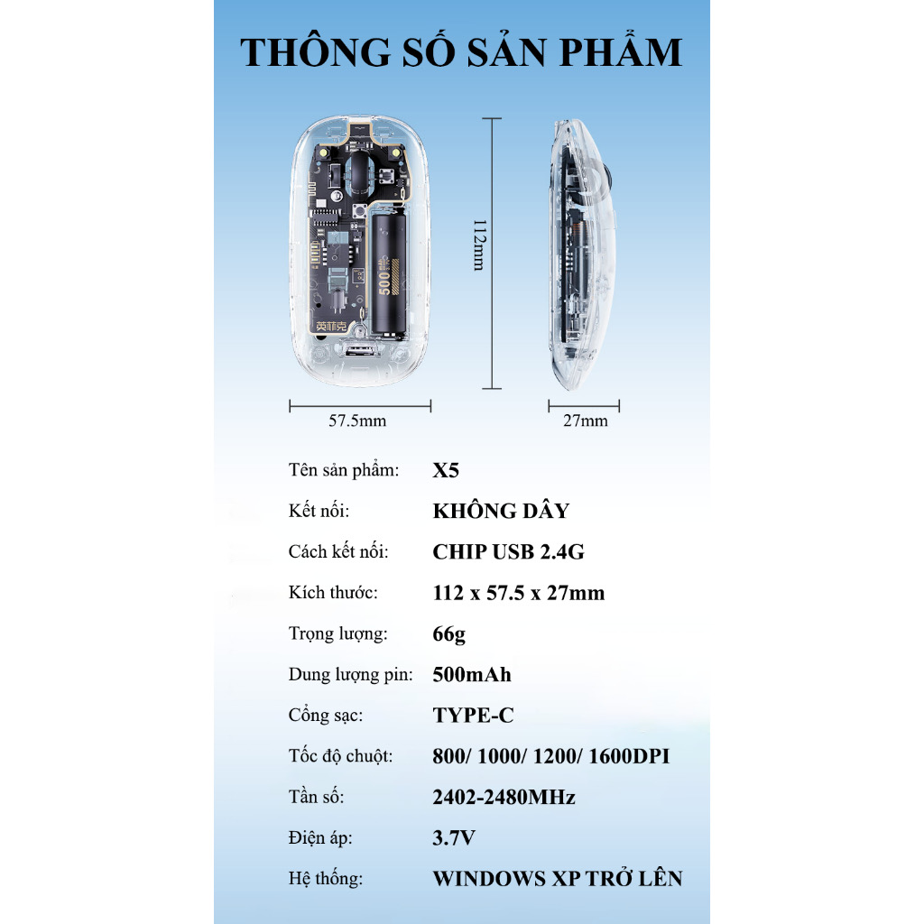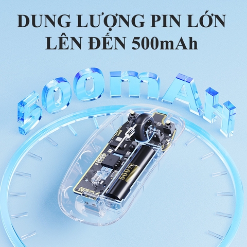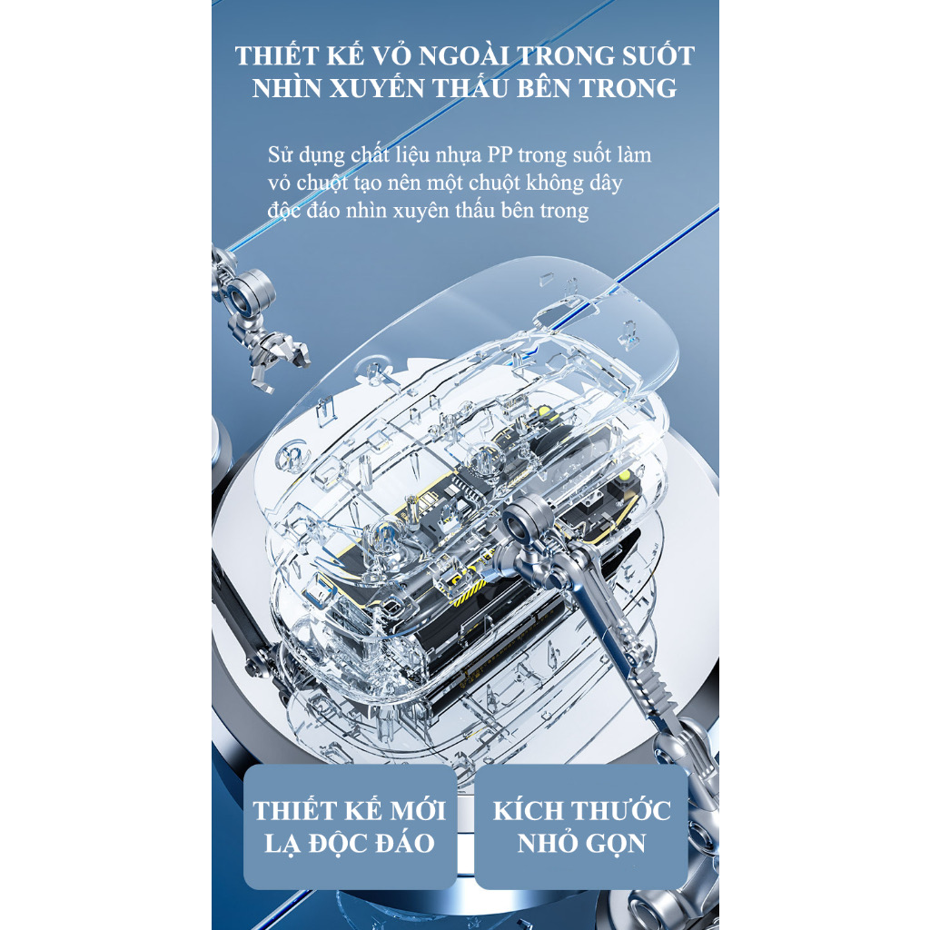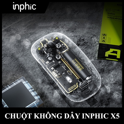 Chuột máy tính không dây TEKKIN INPHIC X5 ngoại hình trong suốt độc lạ pin sạc lại click tắt âm chống ồn văn phòng