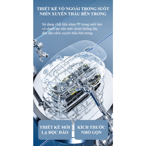 Với thiết kế trong suốt cho phép bạn nhìn xuên thấu hết các linh kiện bên trong, từng chi tiết dù là nhỏ nhất thì bạn vẫn có thể thấy được trên con chuột