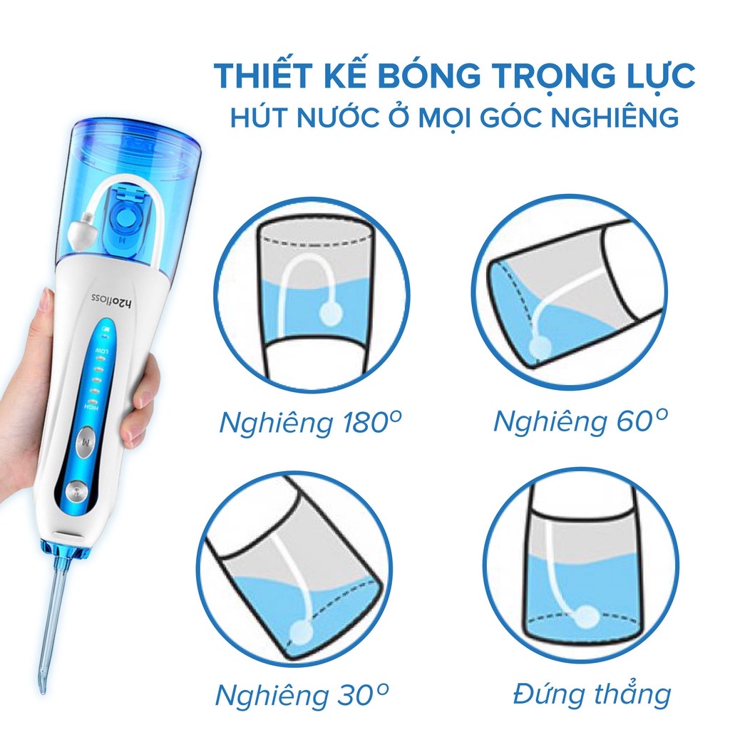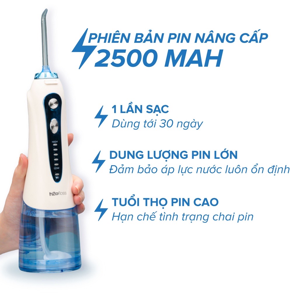 Máy Tăm Nước H2oFloss Tặng Túi Vải + 7 Đầu Tăm Cải tiến công nghệ tia nước sạch X4 Lần - BH 12 tháng 1 đổi 1