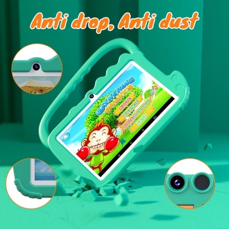 2. Chống rơi: Máy tính bảng này có vỏ gel silicon sẽ giữ cho máy tính bảng của con bạn an toàn khỏi va đập, rơi và trầy xước. Các góc được gia cố giúp máy tính bảng được bảo vệ khi cần nhất.